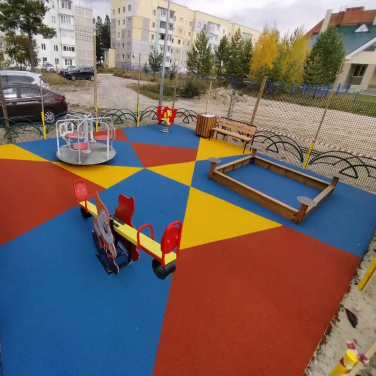 Цветное покрытие широко используется для обустройства детских площадок, спортивных зон, тротуаров, парковочных мест и дворовых территорий. Материал также применяется при создании зон отдыха и коммерческих объектов.